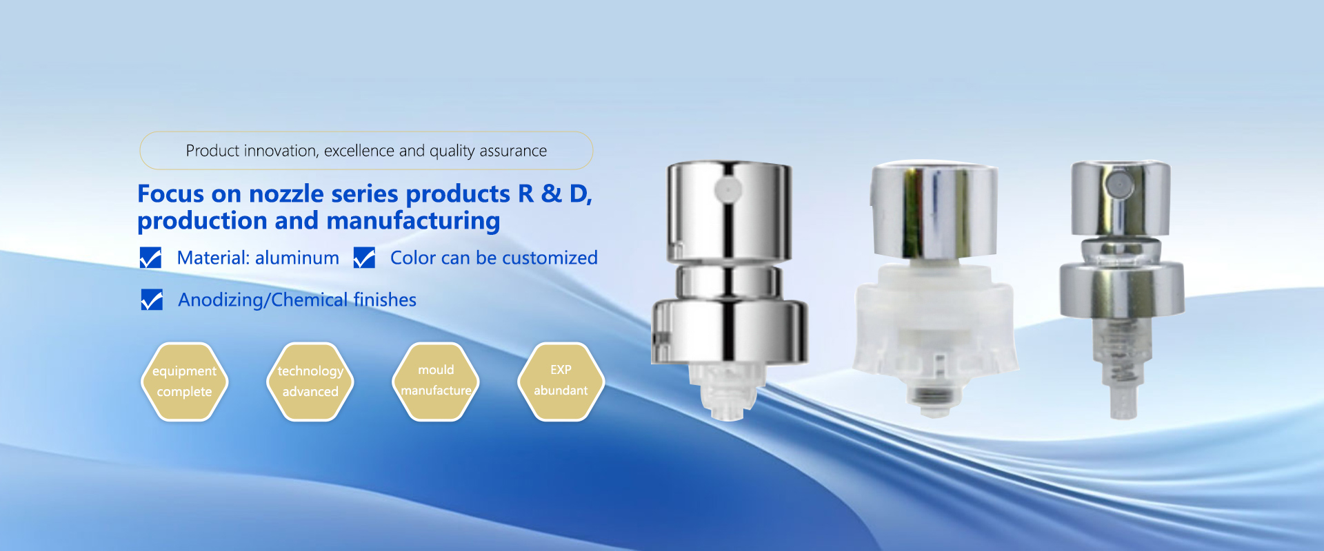 Aideli Spray is located in Shuyang County, Suqian City, Jiangsu Province, is a collection of daily chemical spray pump, cosmetic packaging materials R & D, design, manufacturing, trade as one of the enterprises. With complete equipment and advanced technology for aluminum and plastic products: design, mold manufacturing, stamping, oxidation and injection molding set of production technology. Our company is involved in mold development, punching, polishing aluminum oxidation, injection molding, printing and automatic assembly of a full set of production, each process in strict accordance with ISO. The main products are all kinds of anodized aluminum, anodized aluminum pump head, all kinds of aluminum perfume pump, plastic perfume pump, screw perfume pump.